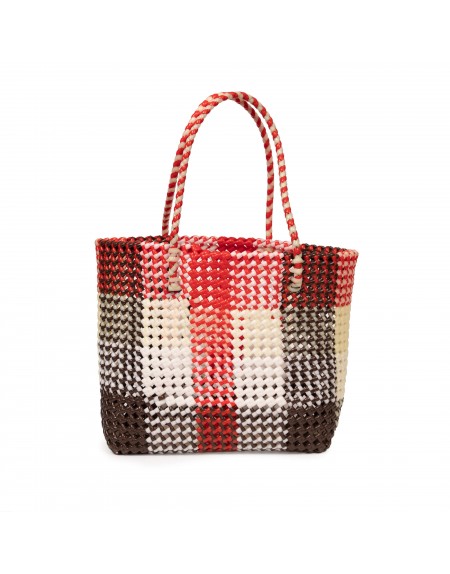 Descripción: Bolso artesanal elaborado con tiras de plástico trenzadas, con un diseño llamativo y resistente. Ideal para el uso diario, combina funcionalidad y estilo, aportando un toque original a cualquier outfit.