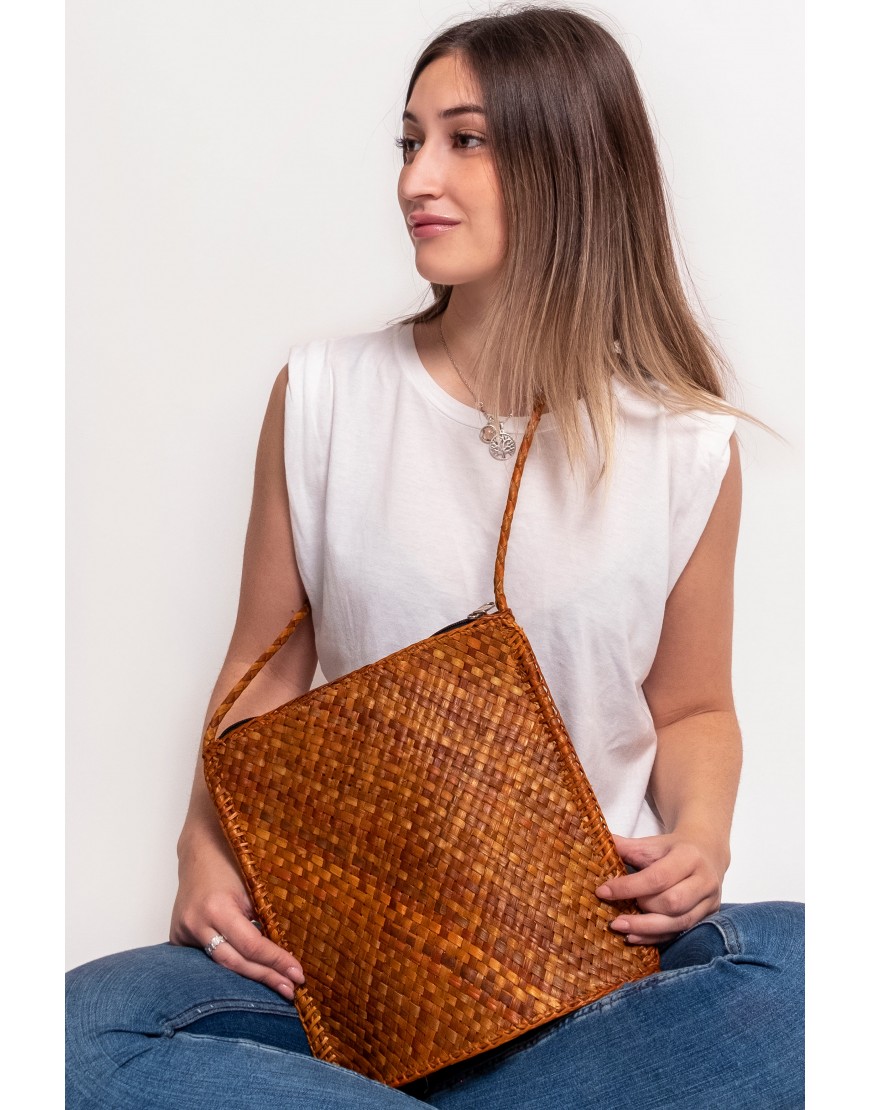 BOLSO BANDOLERA MUJER MARRÓN 100% TEJIDO A MANO FABRICADO EN ESPAÑA REF 1101 AMPARO INFANTES