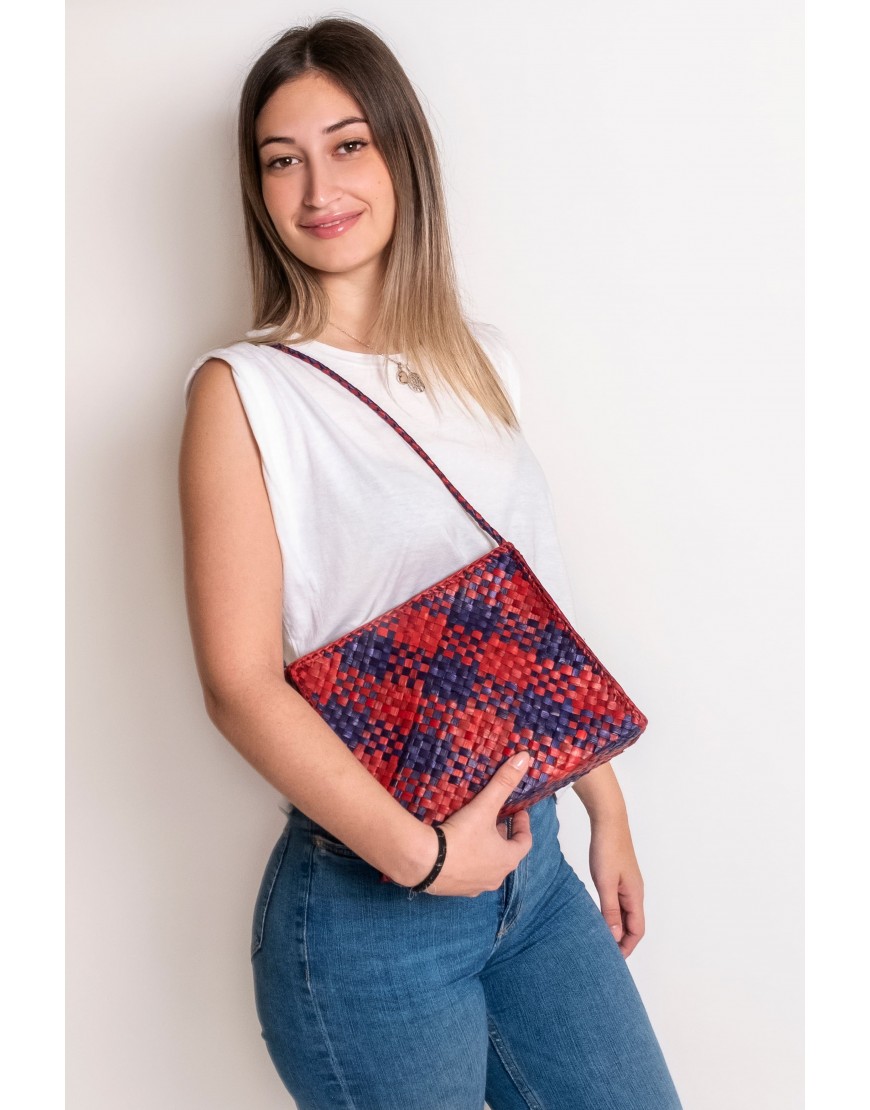 BOLSO BANDOLERA MUJER ROJO / AZUL 100% TEJIDO A MANO FABRICADO EN ESPAÑA REF 1087 AMPARO INFANTES