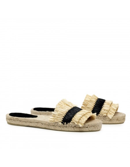 estilo veraniego con suela tipo esparto, diseñada para ofrecer máxima comodidad sin renunciar al estilo. Su diseño de doble tira en la parte superior aporta sujeción y un toque moderno, ideal para looks casuales con personalidad.