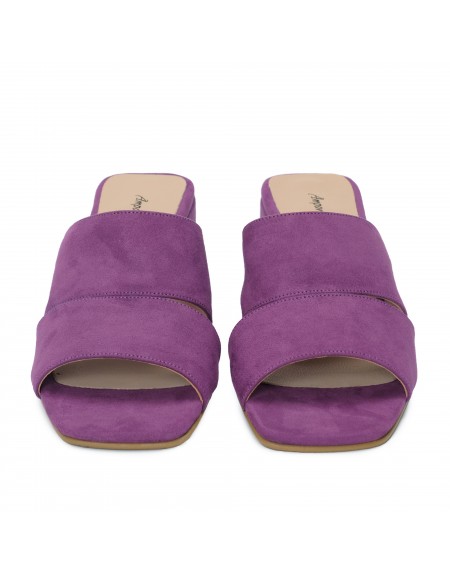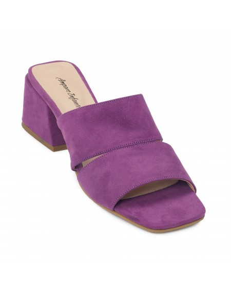 Sandalia elegante de verano, un diseño moderno y minimalista que destaca por su vibrante paleta de colores. Estas sandalias tipo mule (con tira ancha sobre el empeine) son ideales para quienes buscan estabilidad y tendencia gracias a su tacón geométrico de altura media.