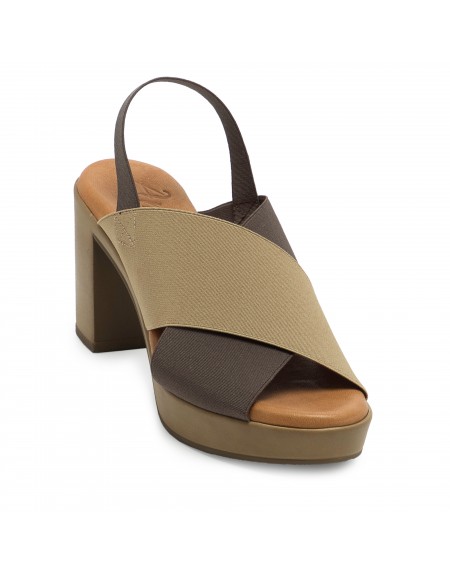 Sandalia AM83 Beige-Tabaco Tacón Ancho